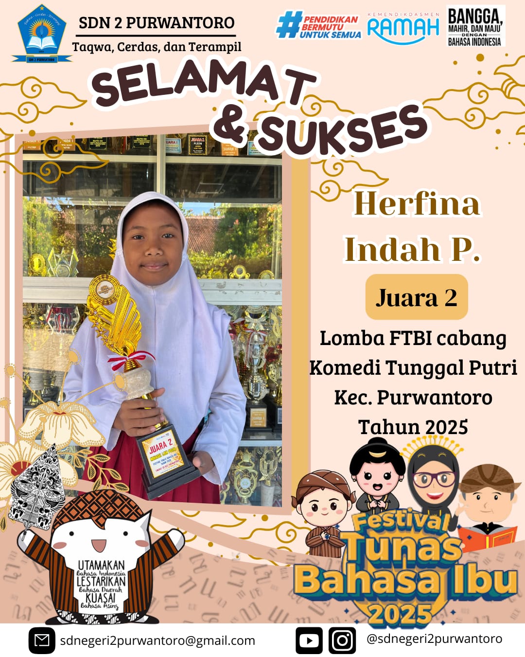 Herfina Indah P._Juara 2 Lomba Komedi Tunggal FTBI Tk. Kecamatan